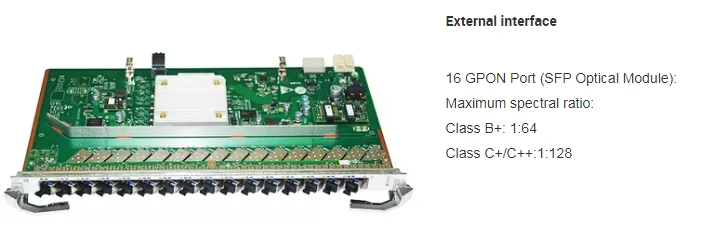 GPHF is a 16-port GPON interface board that cooperates with ONU (OPTIC NETWORK UNIT) equipment to realize GPON service access.